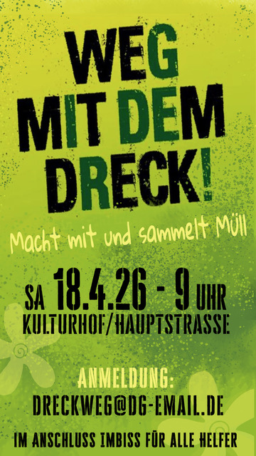 Zur besseren Planung bitten wir um Anmeldung (Teilnahme und Essen) per Email an dreckweg@dg-email.de bis spät. 14.04.26.